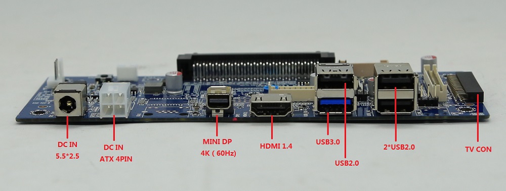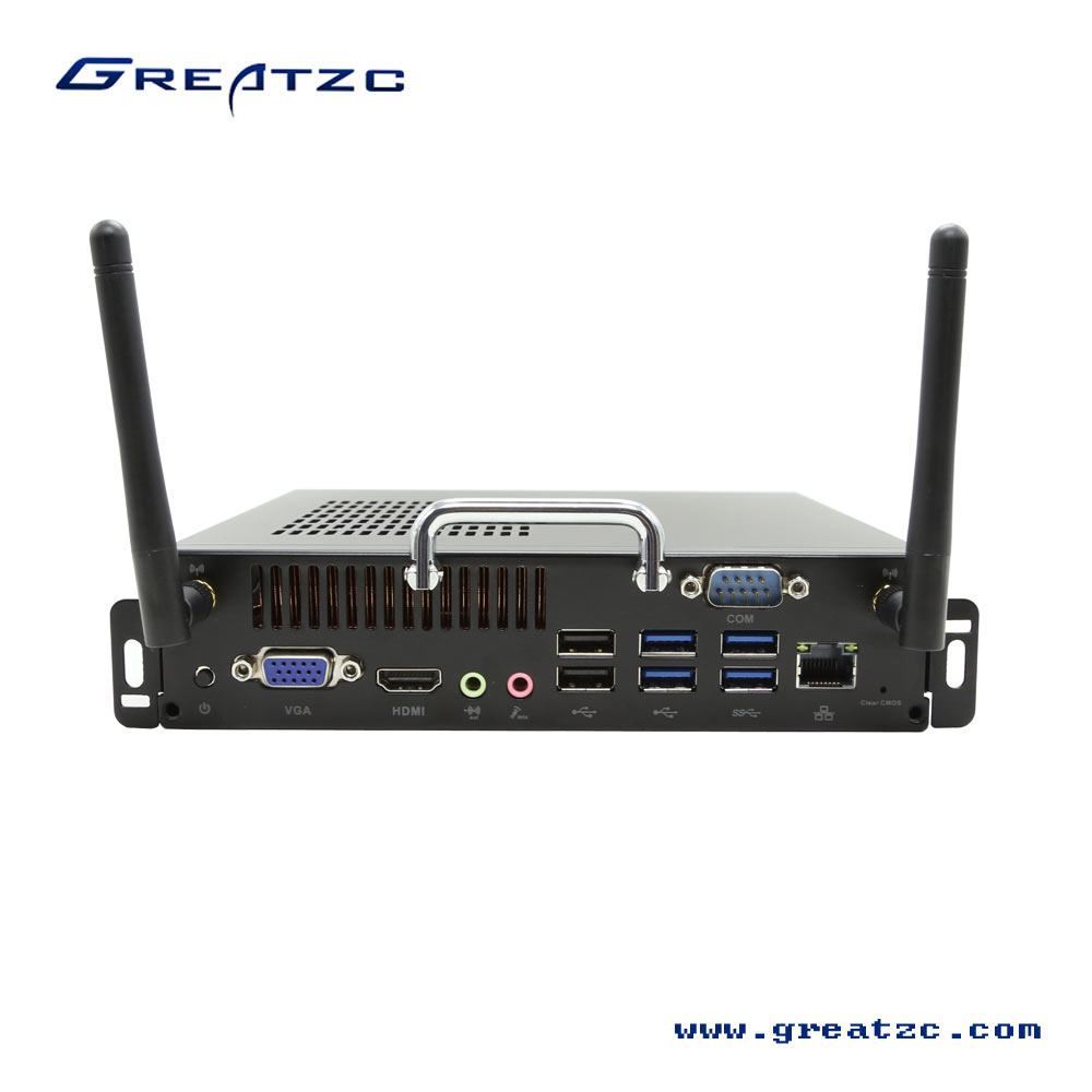 1*POWER开关 1*VGA 1*HDMI 1.4B 1*Audio out 1*MIC 3*USB 2.0 3*USB 3.0 1*RJ45 2*天线 1*OPS JAE 1*DC IN 1*AUTO POW ON |