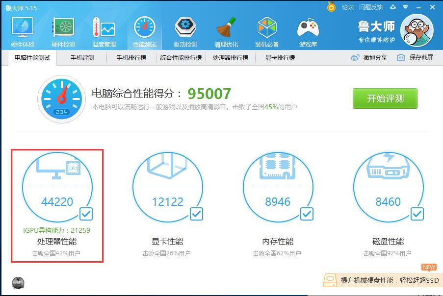 测试软件:鲁大师5.15版本